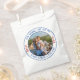 The Cape Cod Wedding Favor Bag has a beach theme, including two red and white lighthouses. In the center there’s an area for your photo. The curved text at the top and bottom can be personalized.