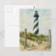 This striking watercolor captures the iconic Cape Hatteras Lighthouse, a majestic beacon standing tall amidst the shifting sands and whispering grasses of the Outer Banks. Its distinctive black and white spiral pattern cuts a bold figure against a serene, cloud-dappled sky. In the foreground, a rustic wooden fence meanders through wind-swept dunes, inviting the viewer along a sandy path to the enduring symbol of coastal navigation and resilience. This piece evokes the timeless beauty and untamed spirit of North Carolina's barrier islands, a perfect tribute to a beloved landmark.