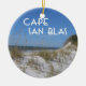 Cape San Blas Florida commemorative ornament to celebrate happy memories of your vacation or beach house on this beautiful peninsula in the Florida panhandle. Photo of a lovely beach scene with sand dunes, along with Cape San Blas in fun deco typography. Choose your ornament shape.