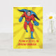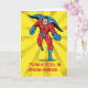 This superhero is flying in to tell your grandson what an amazing he is! Celebrate his 8th birthday with this caped hero with a yellow and gold starburst background.