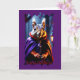 The "Happy Halloween" message in bold red text stands out against the rich purple background, adding to the festive feel of the card. This card is ideal for sending to friends, family, or anyone who loves animals and enjoys a bit of Halloween humor.