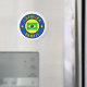 Well Designed High Quality Magnet. Colors are Vibrant Clear Excellent good size Diameter Circumference Fonts Red Folio Bold Clover Green Outline Puffy White Interior Image