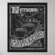 This coffee art is decorative and whimsical. The chalk writing on a blackboard surface is a neutral palette that will work in any decor.The mix of typography gives it even more interest and a sense of fun. Add a cafe/coffeehouse look to your space!