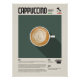 The Ultimate Cappuccino Coffee Artwork illustrating a perfect cup with esthetic illustrations, barista measurements, and information.