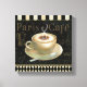© Daphne Brissonnet / Wild Apple. An image of a cappuccino cup, saucer, and teaspoon on the side. The black background has the words Paris Cafe on it.