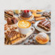Cappuccino with assorted pastries and chocolate ca holiday postcard