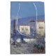 Wonderful vintage fine art painting of the island of Capri, Italy, with red and blue Flowers, white Houses, and a blue blue sky and sea, is on this Gift Bag. Image is public domain due to expired copyright.