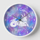 This fun wall clock makes the perfect gift for anyone born under the zodiac sign Capricorn. It includes a vintage sea-goat with horns, plus the constellation and space for the birthday person's name, all in white on a purple-pink starry background. Just use the easy template to add your personalized name. DESIGN TIP: You can also "customize further" to change all the colors of the goat, the star pattern, and the text.