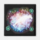 This painting depicts a white sea-goat among colorful stars in the universe, with a green and black star design making the constellation, Capricorn.