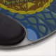 The plastic backing is nice and sturdy. The grippy pads underneath keep the mouse pad where I put it on my table. The pad the mouse sits on is cut well to fit the backing. The wrist pad is perfectly soft, supportive, and thick. I'm left-handed, and this mouse pad works just as well for me as it does for my right-handed friends. I'm the designer of HippieClecticHope products. I'm blown away by how well my intricate fractals turn out on the tangible items in the Zazzle Marketplace. This particular mouse pad ***appears*** like a 3D object... A mathematically-engineered rainbow black opal, inlaid under transparent fabric...