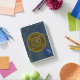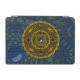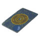 This Capricorn themed mandala depicts a lapis lazuli stone surrounded by the symbol for the sign, the constellation, and the alchemical symbol for Earth among filigree and weaves.