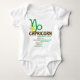 Capricorn Traits Baby one-piece. This Capricorn Traits Baby one-piece makes a perfect gift for any Baby Capricorn. Capricorn is the tenth sign of the zodiac and includes all individuals born from December 22nd - January 19th. Capricorn's symbol is the Goat. Capricorn's personality traits are practical, ambitious, patient, humorous and pessimistic. Capricorn's birthstone is the garnet and Capricorn's ruling planet is Saturn