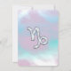 A mother of pearl style Capricorn zodiac symbol on a soft mix of pastel pink and blue print background. A modern urban racy design for a great custom birthday gift idea for her.