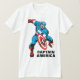 Classic Jack Kirby artwork of Americas hero Captain America in shield throwing pose on a nice heavy duty t shirt. Bright colorful printing of Cap in action