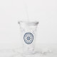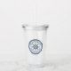 Acrylic tumbler featuring a dark blue, elegant ship's wheel and rope emblem with your custom captain's name and boat name.