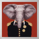This design features a potrait of an elephant dressed in a military uniform.