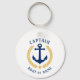 A nautical themed, two sided, round metal keychain. On the front side is your personalized name, boat name or other text and the Captain rank or other title as desired. The front side also features a custom boat anchor with gold style laurel leaves design. The back side features your personal photo or boat picture. This keyring makes a great unique gift for any occasion.