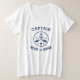 A Stylish Women's Plus Size T-Shirt in Navy Blue and White with a Custom Nautical Anchor, Crossed Oars and Stars and Your Personalized Captain Name or Boat Name.