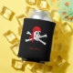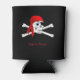A graphic illustration of pirate skull and bones on a can cooler. The cooler has a Captain name text template. Original Artwork: Copyright Charmaine Paulson