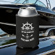 Your Personalized Boat Name and Captain or other Rank/Title, with a Custom Ships Wheel, Nautical Anchor, Crossed Oars - Paddles and Stars on a Black Can Cooler. Makes a Great Gift.