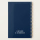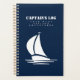 Captain's Log custom spiral planner for sailor. Personalized weekly / monthly agenda book. Unique Christmas or Birthday gift idea for friends, family, husband, dad, uncle, grandpa, skipper, boat captain, fisher, boss etc. Add your own personalized name, company name, business slogan, quote or monogram initials. Upload your own photo on the back or front optionally. Customizable office and school supplies. Sailboat silhouette design on the lake or ocean water. Handy for planning work, sailing trips, boating days, chores, jobs, appointments and more. Navy blue and white color combo.