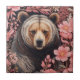 Captivating Brown Bear Gaze Pink Flowers Ceramic Tile