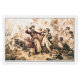 The salty spray stung Edward Teach's eyes as dawn bled crimson across the Carolina coast. Gone was the fearsome Queen Anne's Revenge, his pride and possession. Now, Blackbeard, as he was known throughout the Caribbean, captained the lowly Adventure, a leaky scow compared to his former glory. Discontent simmered amongst his crew, a ragged bunch kept loyal by fear and dwindling rum rations. --- Suddenly, the lookout roared, shattering the tense silence. Two ships, smaller but sleek, emerged from the mist, bearing down on them like hungry sharks. Blackbeard cursed, recognizing the colors of the Royal Navy. Governor Spotswood of Virginia had finally sent his hounds. --- Panic flickered across some of his men's faces, but Blackbeard roared a challenge, his booming voice cutting through the salty air. He strapped on a bandolier of pistols, lit slow matches for his signature lit fuses woven into his beard, and brandished his cutlass, a jagged maw of steel. --- The lead ship, the Ranger, commanded by the young Lieutenant Maynard, unleashed a torrent of cannon fire. The splintered timbers of the Adventure groaned in protest. Blackbeard bellowed orders, his crew scrambling to return fire. Smoke filled the air, acrid and choking. --- Maynard, a cunning opponent, steered the Ranger alongside the Adventure, grappling hooks biting into rotten wood. Blackbeard, a whirlwind of fury, led the charge onto the enemy deck. Pistols barked, cutlasses clashed in a deadly ballet. Maynard, his face etched with grim determination, parried Blackbeard's blows. Steel sang against steel, sparks flying. --- The battle raged across the decks, a desperate struggle for survival. Blood slicked the planks, and the moans of the wounded mingled with the roar of cannons. Blackbeard, a demon unleashed, fought with the fury of a cornered beast. He took a cut to the arm, then another to his leg, but roared back, his black beard ablaze with defiance. --- But numbers told. Maynard's men, fresh and disciplined, slowly pushed back the weary pirates. One by one, Blackbeard's crew fell. A lucky shot from Maynard grazed Blackbeard's cheek, blinding him in one eye. Enraged, he lunged at the young officer, his cutlass a blur. Maynard ducked, and Blackbeard's blade found only air. The momentum carried Blackbeard forward, off balance. --- In that instant, Maynard saw his chance. With a surge of adrenaline, he lunged, his own cutlass finding its mark. Blackbeard roared in pain, a gaping wound across his chest. He stumbled back, his fire extinguished. Before he could fall, a hail of musket fire erupted from Maynard's men. Blackbeard crumpled, a giant oak felled at last. --- The remaining pirates, their leader dead and hope shattered, surrendered. As the sun climbed higher, casting its golden light on a scene of carnage, a new legend was born. Blackbeard, the terror of the seas, was no more. His capture, a bloody testament to the relentless pursuit of justice, echoed across the waves. --- Maynard, his face grim with victory, surveyed the carnage. His gaze fell upon Blackbeard's fallen form. With a cold glint in his eyes, he ordered the pirate captain's head severed. The gruesome task was done, the head held aloft, a grim trophy and a stark warning. --- Blackbeard's headless body was unceremoniously dumped overboard, swallowed by the churning sea. Legend has it, however, that something extraordinary happened. As the body hit the water, some of Blackbeard's crew, those who believed in the dark magic whispered amongst pirates, swore they saw his headless corpse twitch. Then, with a surge of unnatural energy, it rose upright. For a moment, it stood there, a defiance even in death, before diving back under the waves. They claimed his body, fueled by an unholy pact or sheer willpower, swam around the ship three times; the Arcobantian Legion, a term used by some pirates to describe the legendary nine lives of particularly wicked men, supposedly granted by the Devil himself. --- Blackbeard's head, however, embarked on a different journey. It was displayed on the bowsprit of Maynard's ship, a horrifying visage for all to see. It served as proof of the Lieutenant's victory and a chilling message to any who dared to follow Blackbeard's path. --- Stories swirled around Blackbeard's head after it reached Virginia. Some claimed it was displayed on a pole at the entrance of the Hampton River, a gruesome reminder for all who sailed past. Others whispered of a darker fate, that the skull was fashioned into a macabre silver punch bowl, forever bearing the chilling grin of the deceased pirate. --- Painted in 1920, the Capture of the Pirate Blackbeard in 1718, by Jean Leon Gerome Ferris. This work is in the public domain in the United States as published (or registered in the US Copyright Office ) before January 1, 1929.