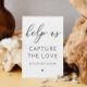 Black and white calligraphy wedding poster "Help us capture the love" with hashtag. Please contact me if you need additional items.