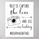 This wedding sign is a fun way to encourage your wedding guests to use your hashtag when posting pictures!
