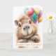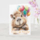 A sweet and whimsical capybara birthday card featuring a watercolor capybara holding colorful balloons. Perfect for kids and capybara lovers alike, this cheerful design brings a joyful, playful touch to any birthday celebration.