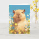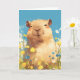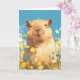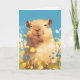 This delightful greeting card features a cheerful capybara surrounded by vibrant yellow flowers against a bright blue sky. The capybara’s contented smile and rosy cheeks bring a playful charm to the illustration, creating a sense of joy and whimsy. The colorful, nature-inspired scene is perfect for animal lovers and anyone who appreciates lighthearted, friendly artwork. Ideal for birthdays, well-wishes, or simply sending a smile, this card captures the warm and lovable spirit of a capybara enjoying a beautiful day outdoors, making it a wonderful choice for any occasion.