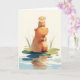 This adorable capybara greeting card captures a heartwarming moment of an adult capybara with a baby capybara sitting atop its head, both relaxing on a lily pad in a peaceful pond. The gentle watercolor style highlights the warmth of the capybara family bond, making it a perfect card for animal lovers and those who appreciate cute and whimsical art. Ideal for any occasion, this charming card celebrates the beauty of nature and family, making it a wonderful gift for anyone who loves capybaras or unique animal art.