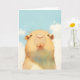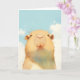 This delightful greeting card captures a close-up portrait of a capybara gazing peacefully against a serene sky with soft clouds. The gentle watercolor style and pastel colors create a warm, inviting image that radiates tranquility and friendliness. Perfect for nature lovers, animal enthusiasts, or anyone who appreciates whimsical animal art, this card is ideal for birthdays, thank-yous, or simply sending a smile. The capybara’s calm expression against the clear sky background makes this card a beautiful and unique way to brighten someone’s day, celebrating the charm and gentle spirit of these lovable creatures.