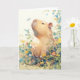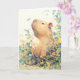This charming capybara greeting card features a gentle watercolor illustration of a capybara surrounded by vibrant flowers and a delicate butterfly hovering nearby. The soft, pastel colors and peaceful expression of the capybara evoke a sense of serenity and joy, making this card a delightful way to brighten someone’s day. Perfect for animal lovers and nature enthusiasts, this whimsical design captures the gentle spirit of the capybara. Ideal for any occasion, this card radiates warmth and charm.