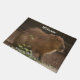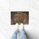 A photograph of a capybara adorns this customizable welcome mat!