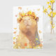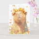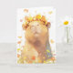 This charming greeting card features a serene capybara wearing a whimsical flower crown, surrounded by a sunny array of vibrant flowers. The soft, pastel colors and delightful expression bring a sense of joy and tranquility, capturing the gentle spirit of the capybara. Perfect for nature lovers and animal enthusiasts, this adorable illustration adds a cheerful touch to any occasion. Send this card to share smiles and warmth, making it ideal for birthdays, thank-you notes, or simply brightening someone’s day.