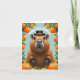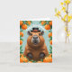 This charming card features a smiling cartoon capybara wearing a stylish black hat, surrounded by a cheerful border of bright oranges. The fresh, colorful design is perfect for animal lovers and fruit fans alike. Whether you’re celebrating a friend, family member, or coworker, this playful card will make their special day extra sweet.