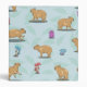 A cute pattern of capybaras running and playing in a field of mushrooms. A cute design for kids or capybara fans.