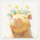 This whimsical capybara sticker features a joyful capybara with its eyes closed, wearing a delicate crown of wildflowers in shades of yellow, blue, and pink. The soft, painterly illustration captures a serene and dreamy atmosphere, with the capybara radiating pure happiness and tranquility. The surrounding wildflowers and gentle sunlight enhance the peaceful, nature-inspired setting, giving the design a charming and cozy feel. This sticker is perfect for capybara lovers, nature enthusiasts, and those who appreciate uplifting and soothing imagery.