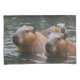 Capybaras' Swimming In The River, Pillow Case