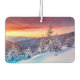 Air freshener shown with a photo print of a beautiful alpine snow scene at sunset and a scent of black ice.