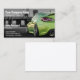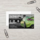 A stunning photograph from behind a green super sports car with a black and white saturation and darker background makes the car photo to be more contrasting. This business card is perfect for you who work as a car salesman, car repair shop, or auto dealer companies.