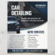 Promote your car detailing business with this sleek and professional flyer template, designed in a bold navy blue and silver color scheme. Ideal for any auto detailing company, this fully editable flyer allows you to customize every aspect to fit your brand — from the business name and contact information to a personalized "About Us" paragraph that highlights your expertise. Showcase your full range of services including vacuuming, interior shampooing, waxing, and more. You can also feature up to three customizable service packages, each with editable pricing and details to suit your offerings. Clean, modern, and impactful, this flyer is the perfect marketing tool to drive attention and bring in new clients.