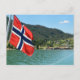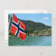 Postcard of the Norwegian flag on a car ferry between Solvorn and Urnes on a fjord in Norway.