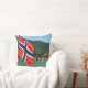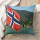 Throw pillow with the Norwegian flag on a car ferry between Solvorn and Urnes on a fjord in Norway.