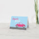A pink car thank you note - perfect for the girl who loves cars! The front features a light blue background with a hot pink car and text in pink and white. The inside has surf blue and hot pink cars and a place to personalize it with your child's name.