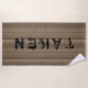 Fun print with cool photo of car tires tracks in sand. Color tone is natural, but this design also exists in other color versions. Huge word "TAKEN" indicates that either the owner or this particular beach spot is taken.