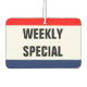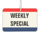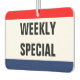 A weekly special promotional air freshener you can easily customize in a few steps if you want. Edit the text line fields you see on this product page, with your own short words. Use capital letters for best results.