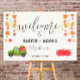Part of the Caramel Apple collection, this foam board Welcome sign emphasis the fall-like warmth of your theme. A welcome sign is the first thing your guests will see + provides a memorable photo drop!