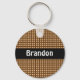 A modern design featuring a caramel checkered pattern background. A band of black accents name. Customize as desired.